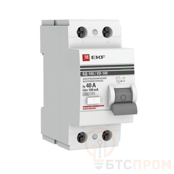 Выключатель дифференциального тока (УЗО) 2п 40А 100мА тип AC ВД-100 (электромех.) PROxima EKF elcb-2-40-100-em-pro