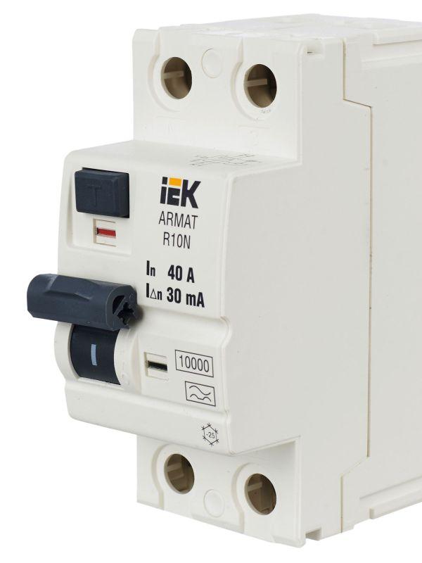 Выключатель дифференциального тока (УЗО) 2п 40А 30мА тип A ВДТ R10N ARMAT IEK AR-R10N-2-040A030 фото в каталоге от BTSprom.by