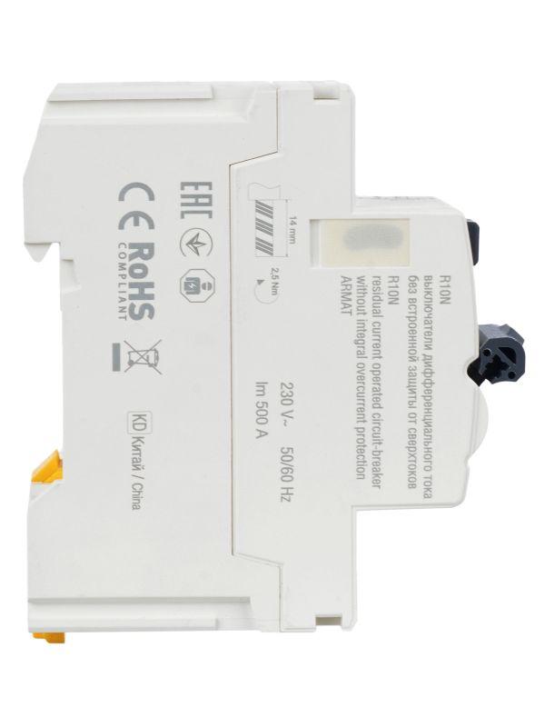 –Выключатель дифференциального тока (УЗО) 2п 40А 30мА тип A ВДТ R10N ARMAT IEK AR-R10N-2-040A030