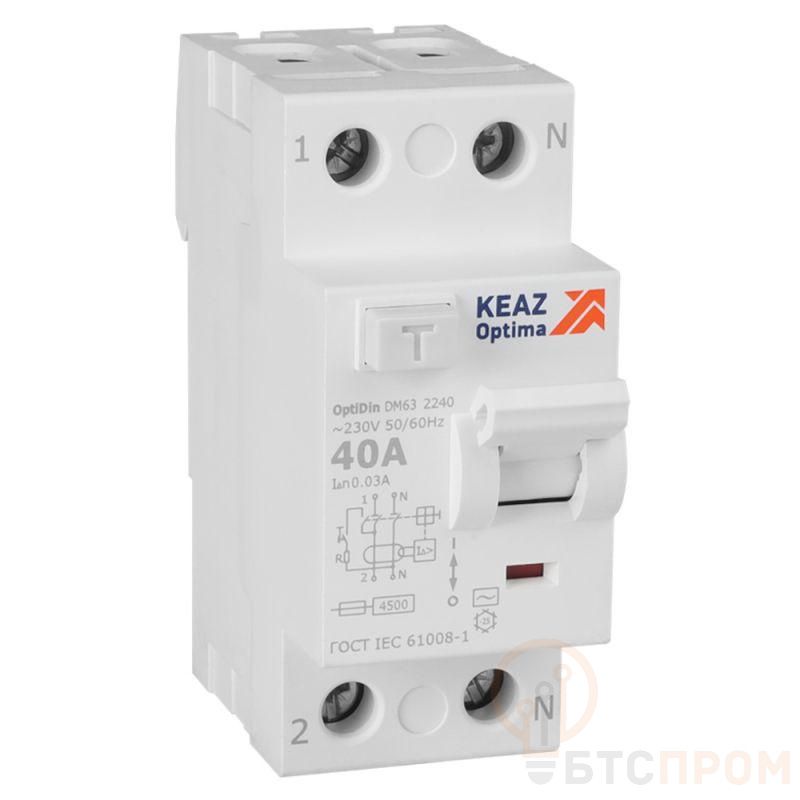 Выключатель дифференциального тока (УЗО) 2п 40А 30мА тип AC 4.5кА OptiDin DM63-2240 УХЛ4 КЭАЗ 343889