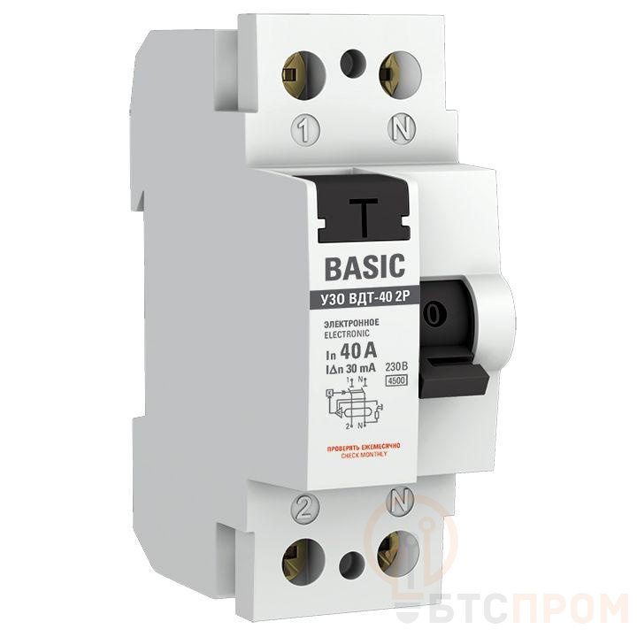 Выключатель дифференциального тока (УЗО) 2п 40А 30мА тип AC Basic электрон.EKF elcb-2-40-30e-sim фото в каталоге от BTSprom.by
