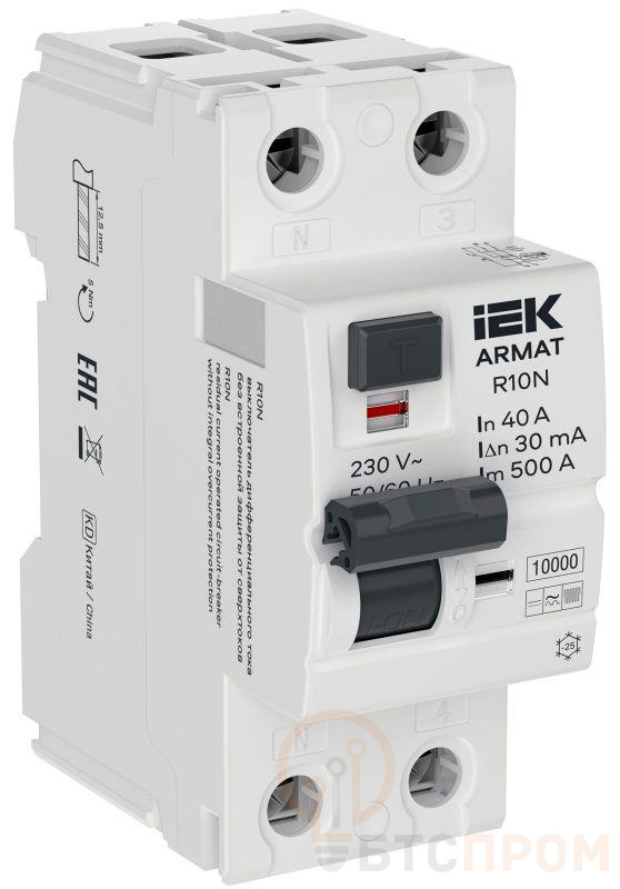 Выключатель дифференциального тока (УЗО) 2п 40А 30мА тип B ВДТ R10N ARMAT IEK AR-R10N-2-040B030 фото в каталоге от BTSprom.by