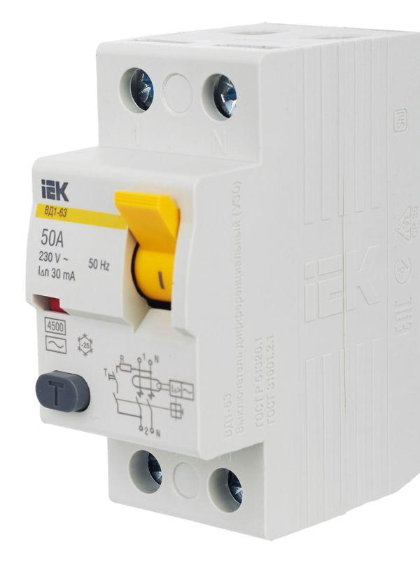Выключатель дифференциального тока (УЗО) 2п 50А 30мА тип AC ВД1-63 IEK MDV10-2-050-030 фото в каталоге от BTSprom.by