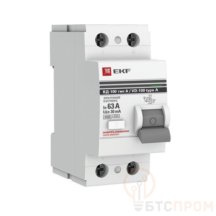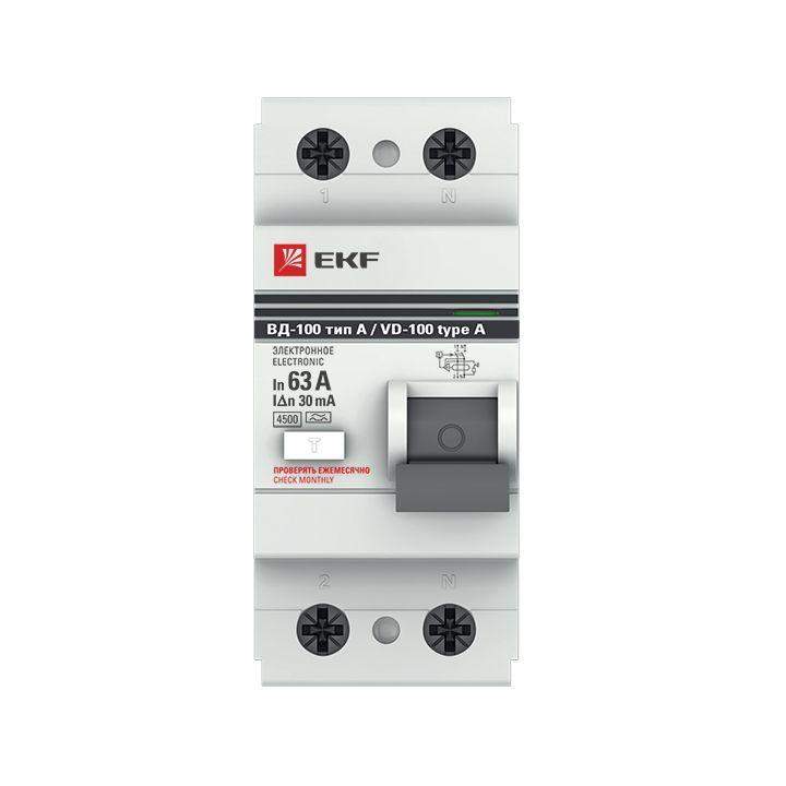 Выключатель дифференциального тока (УЗО) 2п 63А 30мА тип A ВД-100 электрон.PROxima EKF elcb-2-63-30-e-a-pro