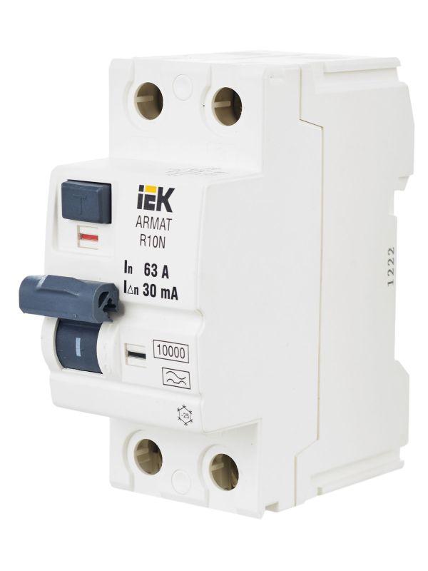 Выключатель дифференциального тока (УЗО) 2п 63А 30мА тип A ВДТ R10N ARMAT IEK AR-R10N-2-063A030 фото в каталоге от BTSprom.by
