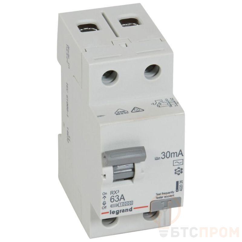 Выключатель дифференциального тока (УЗО) 2п 63А 30мА тип AC RX3 ИЭК Leg 402026 фото в каталоге от BTSprom.by