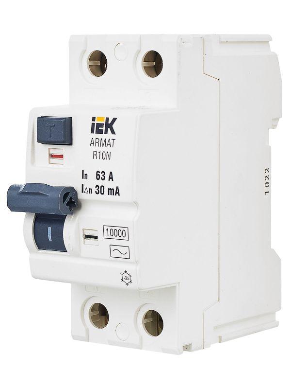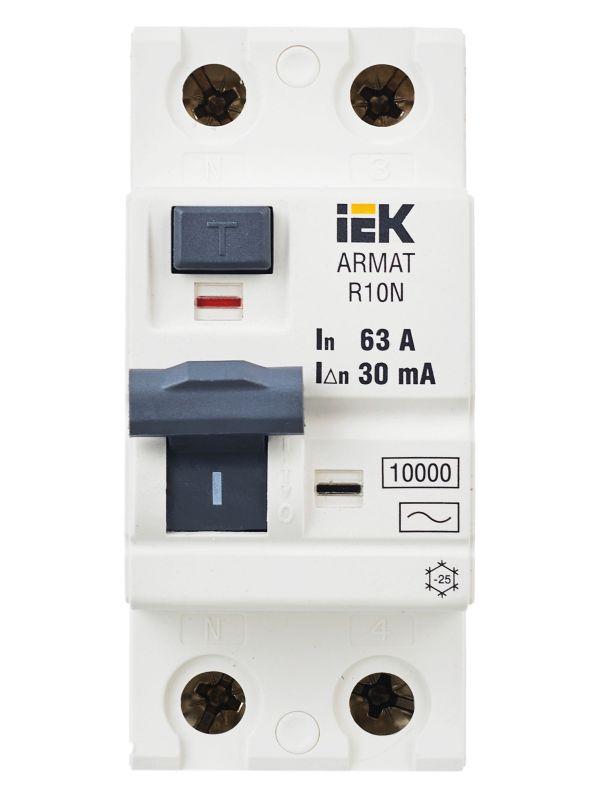 Выключатель дифференциального тока (УЗО) 2п 63А 30мА тип AC ВДТ R10N ARMAT IEK AR-R10N-2-063C030 фото в каталоге от BTSprom.by