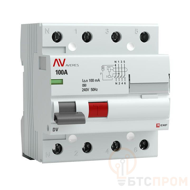 Выключатель дифференциального тока (УЗО) 4п 100А 100мА тип A DV AVERES EKF rccb-4-100-100-a-av фото в каталоге от BTSprom.by