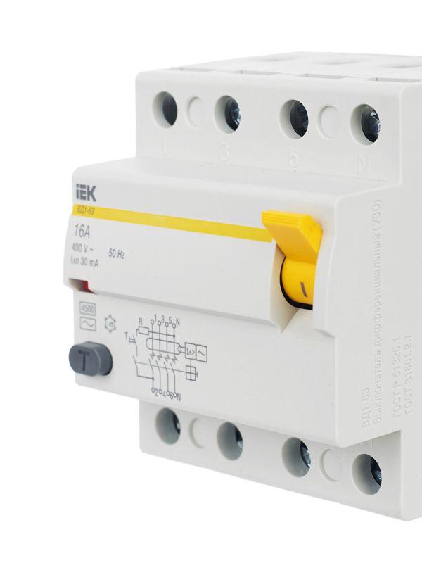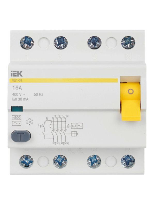 Выключатель дифференциального тока (УЗО) 4п 16А 30мА тип AC ВД1-63 KARAT IEK MDV10-4-016-030 фото в каталоге от BTSprom.by