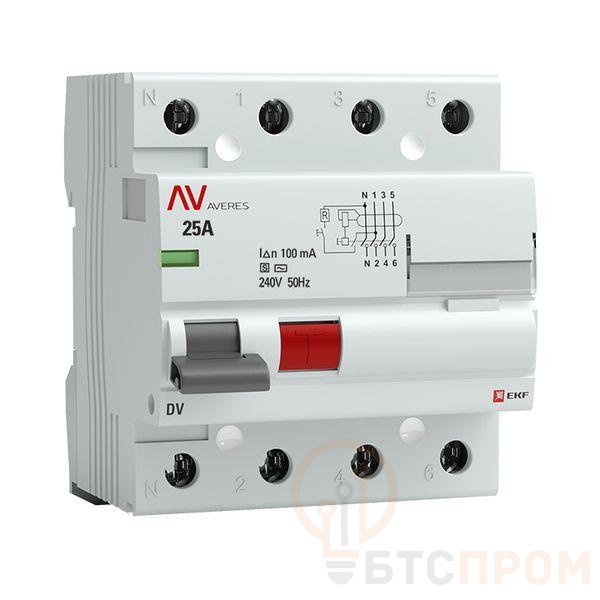 Выключатель дифференциального тока (УЗО) 4п 25А 100мА тип S DV AVERES EKF rccb-4-25-100-s-av фото в каталоге от BTSprom.by