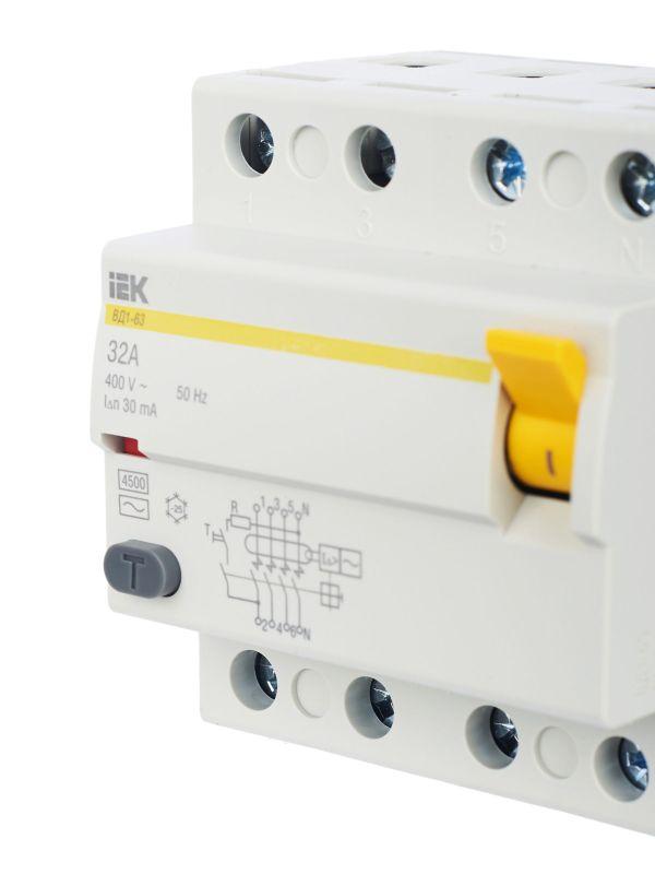 выключатель дифференциального тока (узо) 4п 32а 30ма 6ка тип ac вд3-63 karat iek mdv20-4-032-030 от BTSprom.by