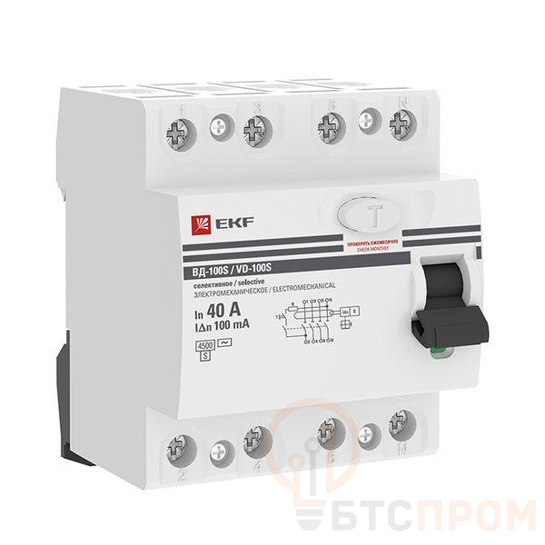 Выключатель дифференциального тока (УЗО) 4п 40А 100мА тип AC ВД-100 (электромех.) PROxima EKF elcb-4-40-100S-em-pro