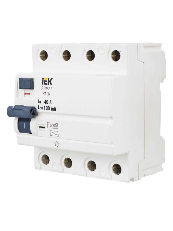 –Выключатель дифференциального тока (УЗО) 4п 40А 100мА тип AC ВДТ R10N ARMAT IEK AR-R10N-4-040C100