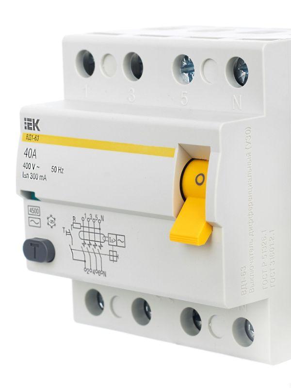 Выключатель дифференциального тока (УЗО) 4п 40А 300мА тип AC ВД1-63 KARAT IEK MDV10-4-040-300 фото в каталоге от BTSprom.by