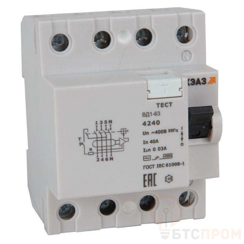 Выключатель дифференциального тока (УЗО) 4п 40А 300мА ВД1-63-4440-АС УХЛ4 электронное КЭАЗ 318492 фото в каталоге от BTSprom.by