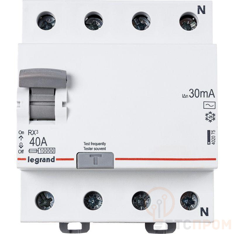 Выключатель дифференциального тока (УЗО) 4п 40А 30мА тип A RX3 Leg 402075 фото в каталоге от BTSprom.by