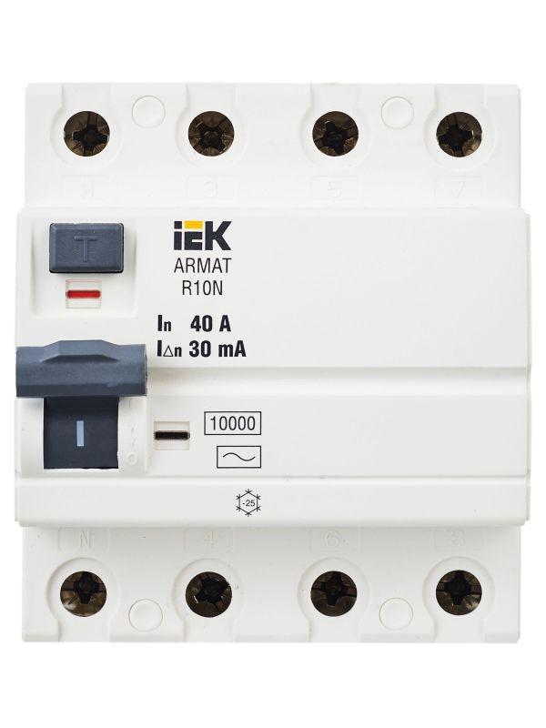 –Выключатель дифференциального тока (УЗО) 4п 40А 30мА тип AC ВДТ R10N ARMAT IEK AR-R10N-4-040C030