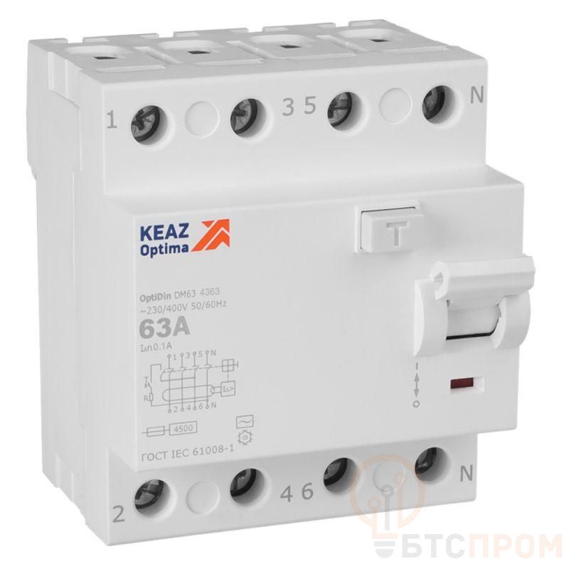 Выключатель дифференциального тока (УЗО) 4п 63А 100мА тип AC 4.5кА OptiDin DM63-4363 УХЛ4 КЭАЗ 343899