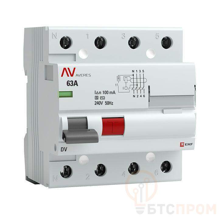 Выключатель дифференциального тока (УЗО) 4п 63А 100мА тип S DV AVERES EKF rccb-4-63-100-s-av фото в каталоге от BTSprom.by
