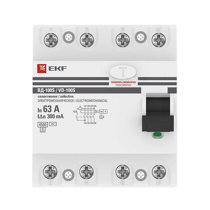 Выключатель дифференциального тока (УЗО) 4п 63А 300мА тип AC ВД-100 (электромех.) PROxima EKF elcb-4-63-300S-em-pro