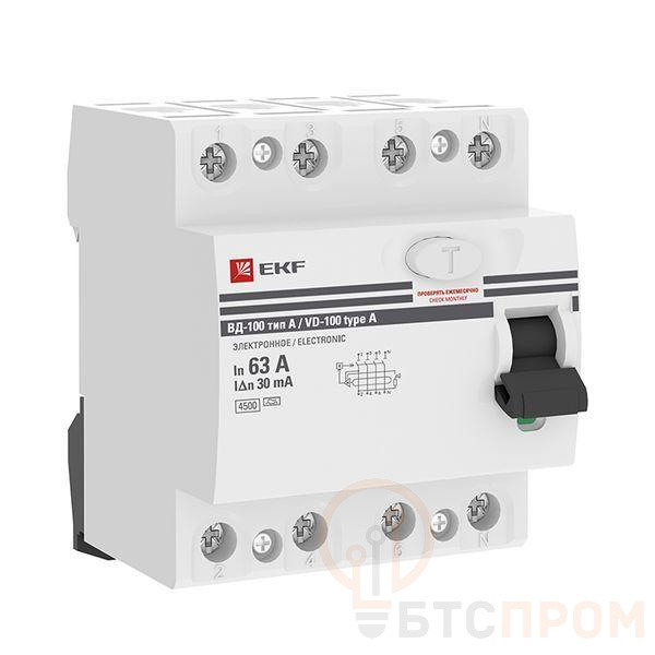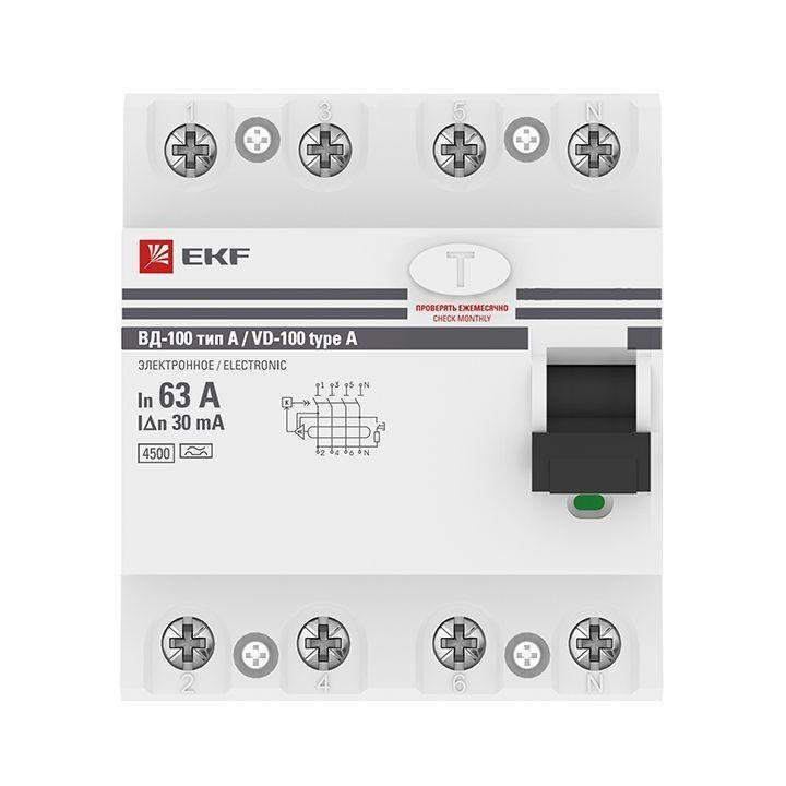 Выключатель дифференциального тока (УЗО) 4п 63А 30мА тип A ВД-100 электрон.PROxima EKF elcb-4-63-30-e-a-pro