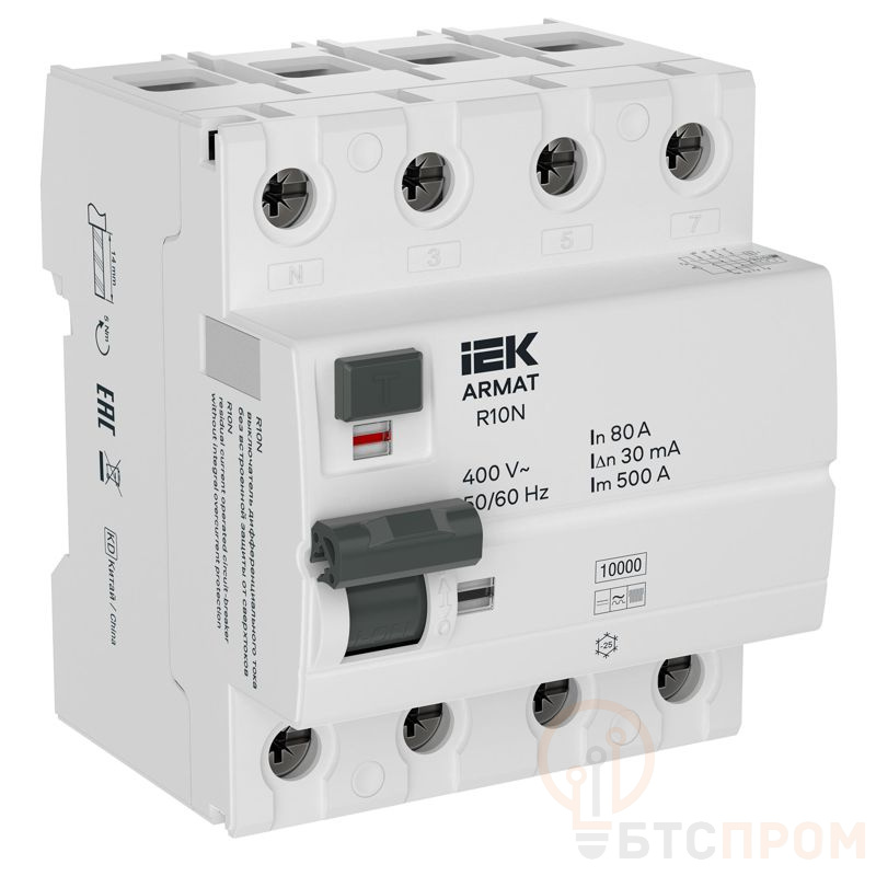 Выключатель дифференциального тока (УЗО) 4п 80А 30мА тип B ВДТ R10N ARMAT IEK AR-R10N-4-080B030 фото в каталоге от BTSprom.by