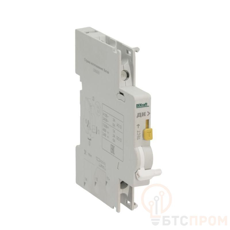 Контакт дополнительный ДК-105 для автоматических выключателей серии ВА-105 и ВА-105 DC Dekraft; предназначен для сигнализации состояния выключателя ВКЛ/ОТКЛ; тип контакта переключающий; ширина 9 мм; присоединение к выключателю слева.