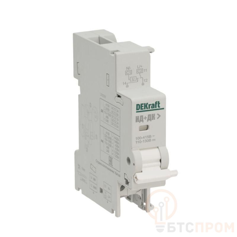 Расцепитель независимый серии НД-105 Dekraft для серий ВА-105, ВА-105 DC; предназначен для дистанционного отключения выключателя; ном.напряжение 110-415В пер. тока и 110-130В пост. тока; напряжение срабатывания 70-110% Un; ширина 18 мм; присоединение к аппарату слева.