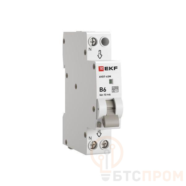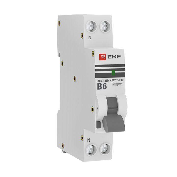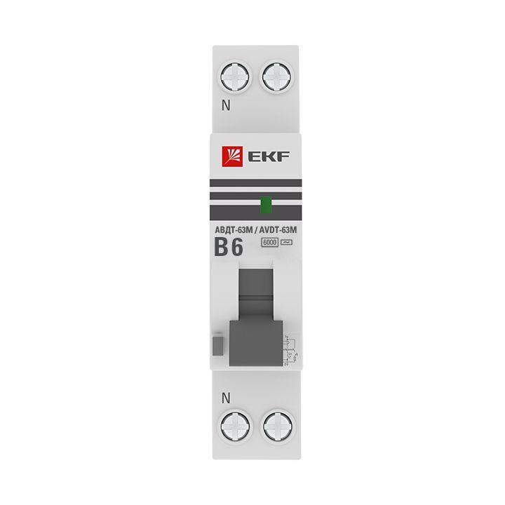 Выключатель автоматический дифференциального тока 1мод. B 6А 10мА тип АС 6кА АВДТ-63М (электрон.) PROxima EKF DA63M-6B-10
