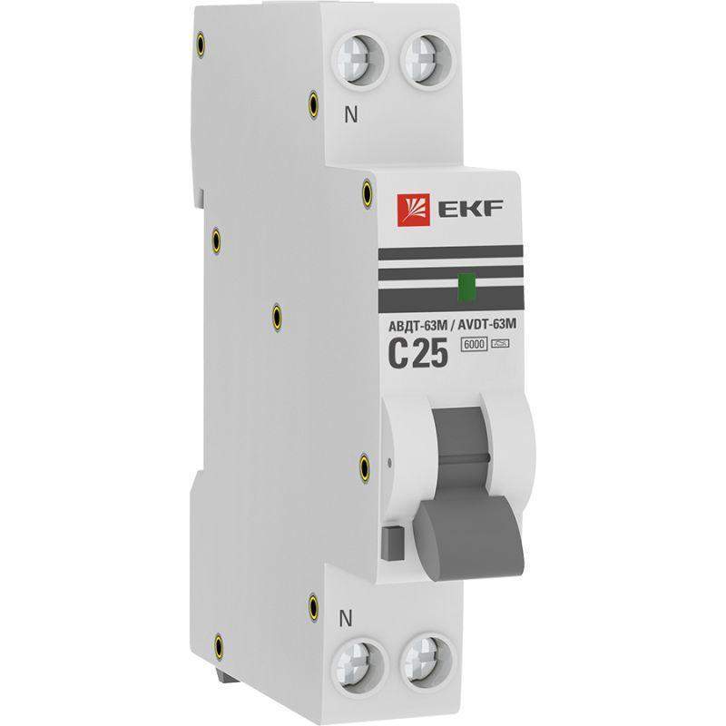 Выключатель автоматический дифференциального тока 1мод. C 25А 100мА тип А 6кА АВДТ-63М (электрон.) PROxima EKF D636EA25C100