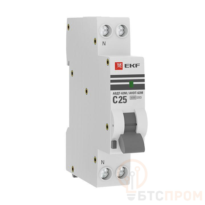 Выключатель автоматический дифференциального тока 1мод. C 25А 30мА тип AC 6кА АВДТ-63М электрон. PROxima EKF DA63M-25-30