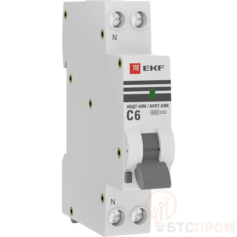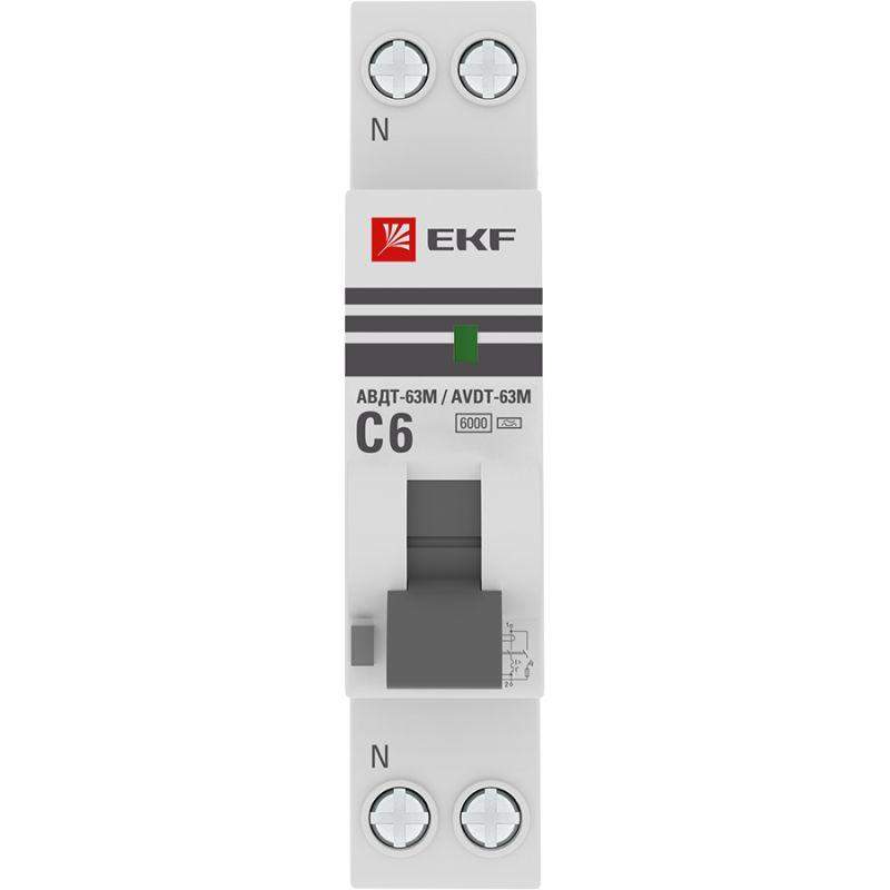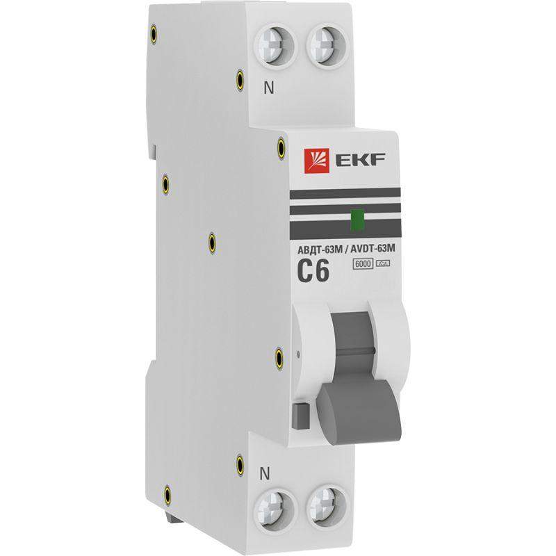 Выключатель автоматический дифференциального тока 1мод. C 6А 10мА тип А 6кА АВДТ-63М (электрон.) PROxima EKF D636EA06C10