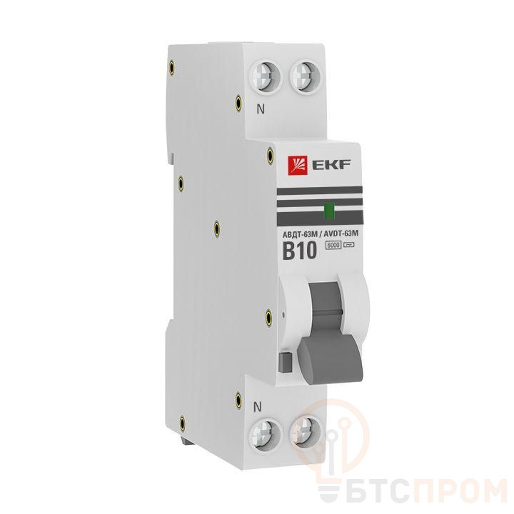 Выключатель автоматический дифференциального тока 1мод. B 10А 30мА тип AС 6кА АВДТ-63М электрон. PROxima EKF DA63M-10B-30