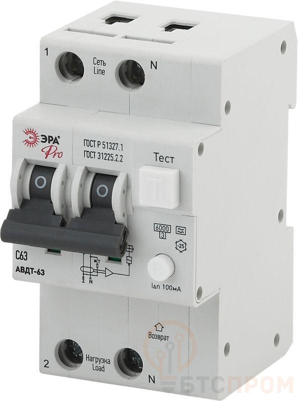 Выключатель автоматический дифференциального тока 1P+N C 63А 100мА тип A АВДТ 63 Pro NO-901-97 ЭРА Б0031847
