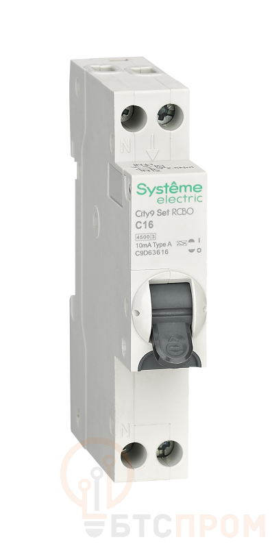 Выключатель автоматический дифференциального тока 2п (1P+N) C 16А 10мА тип A 4.5кА City9 18мм SE C9D63616