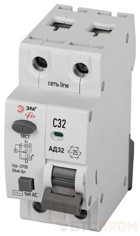 Выключатель автоматический дифференциального тока 1P+N C 32А 30мА тип AC защита 230В АВДТ 4.5кА PRO D32E2C32AC30P АД32 электронное Эра Б0057355
