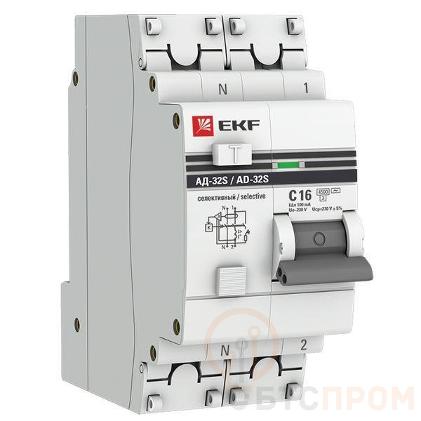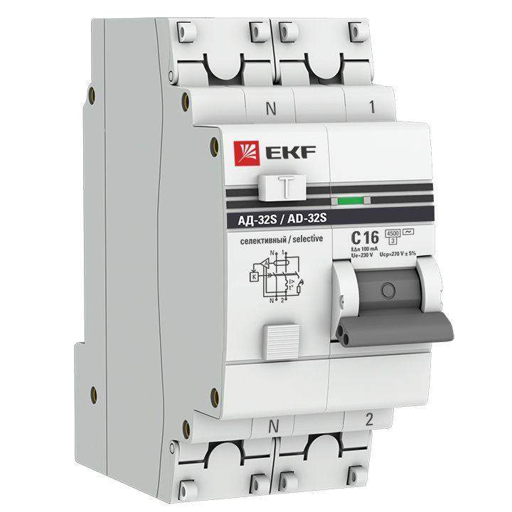 Выключатель автоматический дифференциального тока 2п (1P+N) 16А 100мА АД-32 селект. PROxima EKF DA32-16-100S-pro