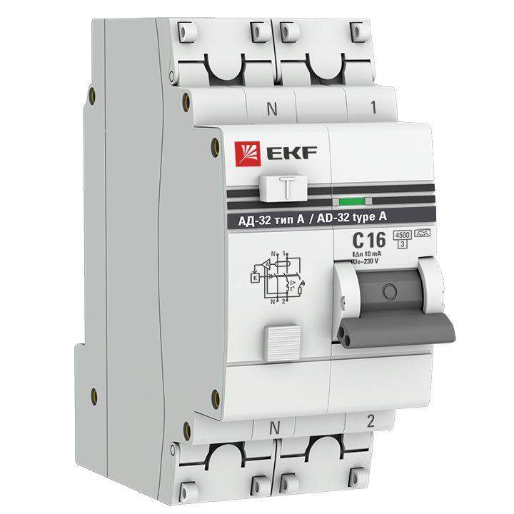 Выключатель автоматический дифференциального тока 2п (1P+N) 16А 10мА тип A АД-32 PROxima EKF DA32-16-10-a-pro