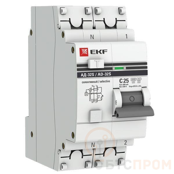 Выключатель автоматический дифференциального тока 2п (1P+N) 25А 300мА АД-32 селект. PROxima EKF DA32-25-300S-pro