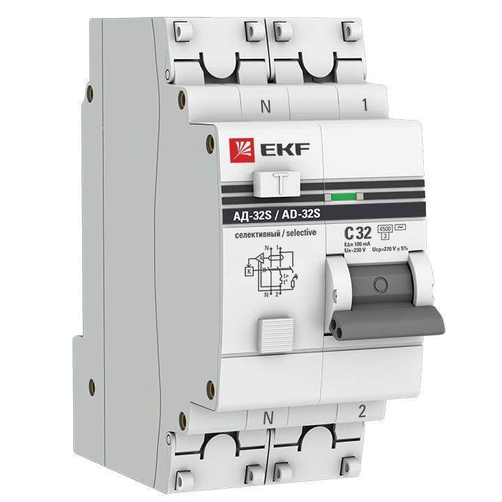 Выключатель автоматический дифференциального тока 2п (1P+N) 32А 100мА АД-32 селект. PROxima EKF DA32-32-100S-pro