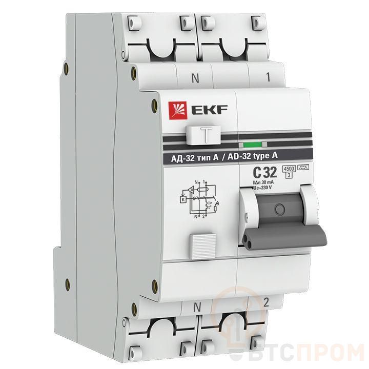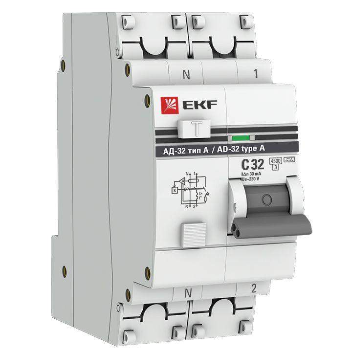 Выключатель автоматический дифференциального тока 2п (1P+N) 32А 30мА тип A АД-32 PROxima EKF DA32-32-30-a-pro