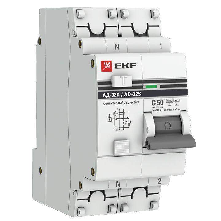Выключатель автоматический дифференциального тока 2п (1P+N) 50А 300мА АД-32 селект. PROxima EKF DA32-50-300S-pro