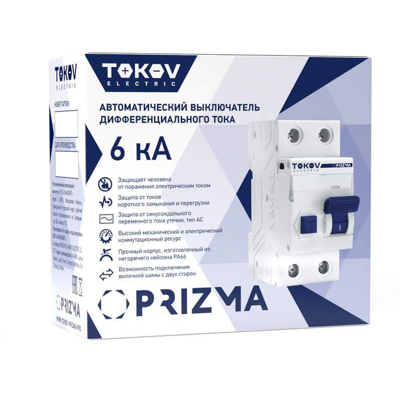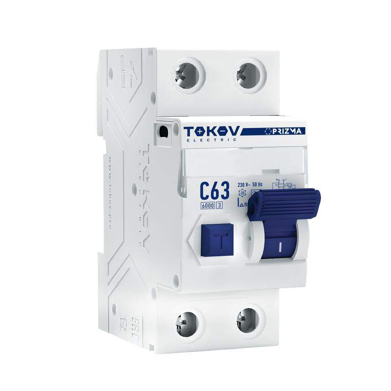 Выключатель автоматический дифференциального тока 2п (1P+N) C 63А 30мА тип AC 6кА PRIZMA TOKOV Electric TKE-PZ60-RCBO-2-63-30-AC