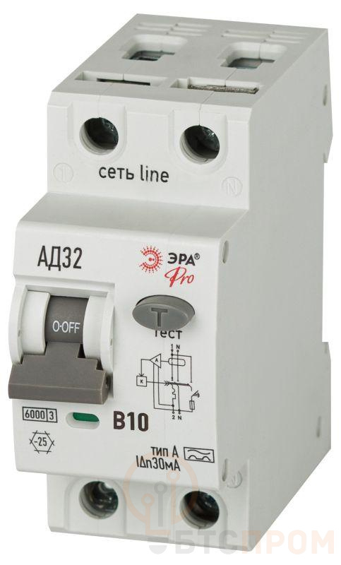 Выключатель автоматический дифференциального тока 2п (1P+N) B 10А 30мА тип А 6кА АД-32 электрон. PRO D326E2B10А30 Эра Б0059066