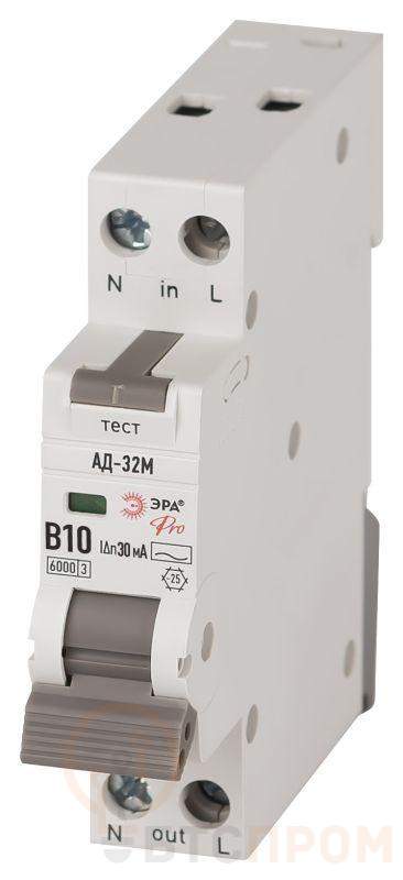 Выключатель автоматический дифференциального тока 2п (1P+N) B 10А 30мА тип АС 6кА АД-32M электрон. PRO DM32E2B10AC30 Эра Б0058980