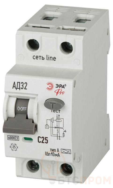 Выключатель автоматический дифференциального тока 2п (1P+N) B 25А 10мА тип A 6кА АД-32 электрон. PRO D326E2B25A10 Эра Б0059197