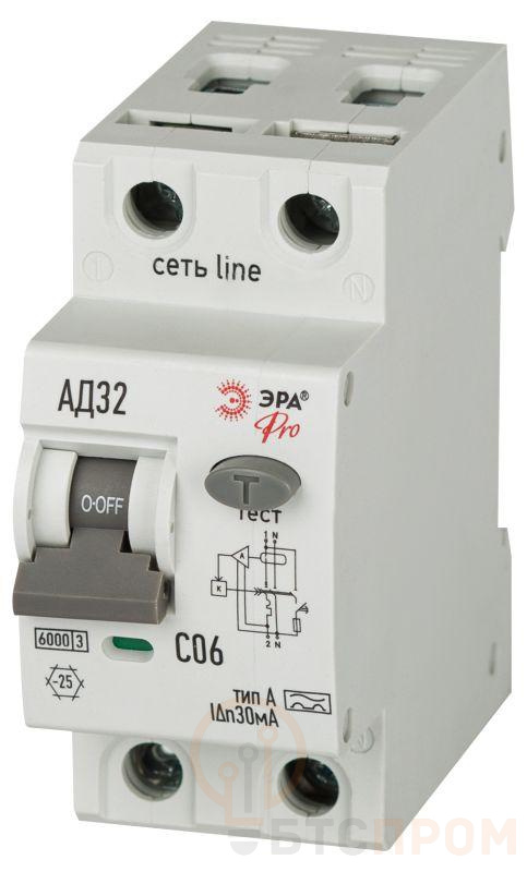 Выключатель автоматический дифференциального тока 2п (1P+N) C 06А 30мА тип А 6кА АД-32 электрон. PRO D326E2C06А30 Эра Б0059064