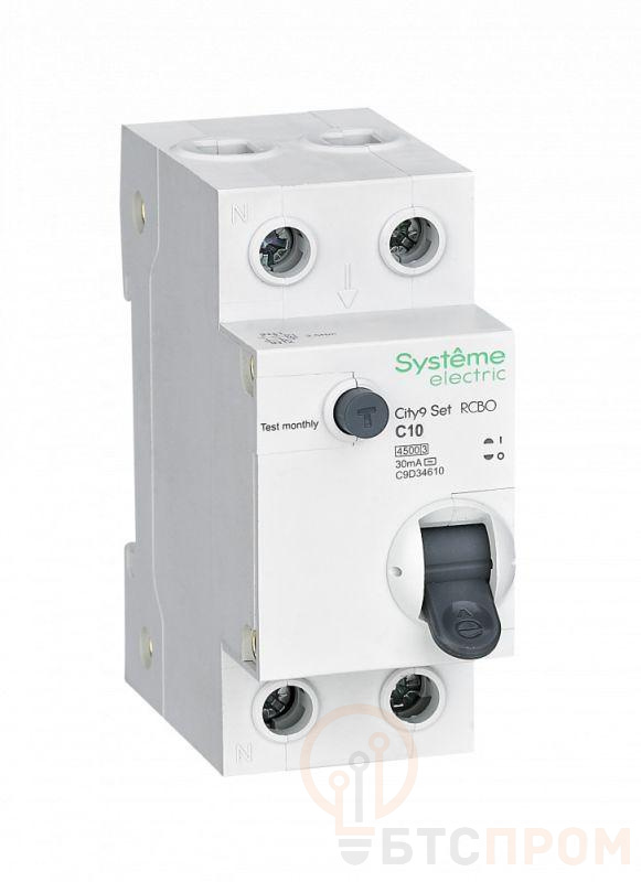 Автоматические выключатели дифференциального тока (АВДТ) серии City9 Set Systeme Electric,1P+N, номинальный ток 10 А, характеристика С, Icn = 4.5 кА, ток утечки 30 мА, тип АС. АВДТ применяется в электрических сетях напряжением 230В. Предназначен для защиты сети от перегрузок, людей от поражения электрическим током и токов короткого замыкания. Уставка по току утечки 30 мА обеспечивает гарантированную защиту людей при прямом прикосновении. Кнопка тест обеспечивает проверку работоспособности аппарата. Крепление на DIN-рейку шириной 35 мм. Безопасные клеммы.