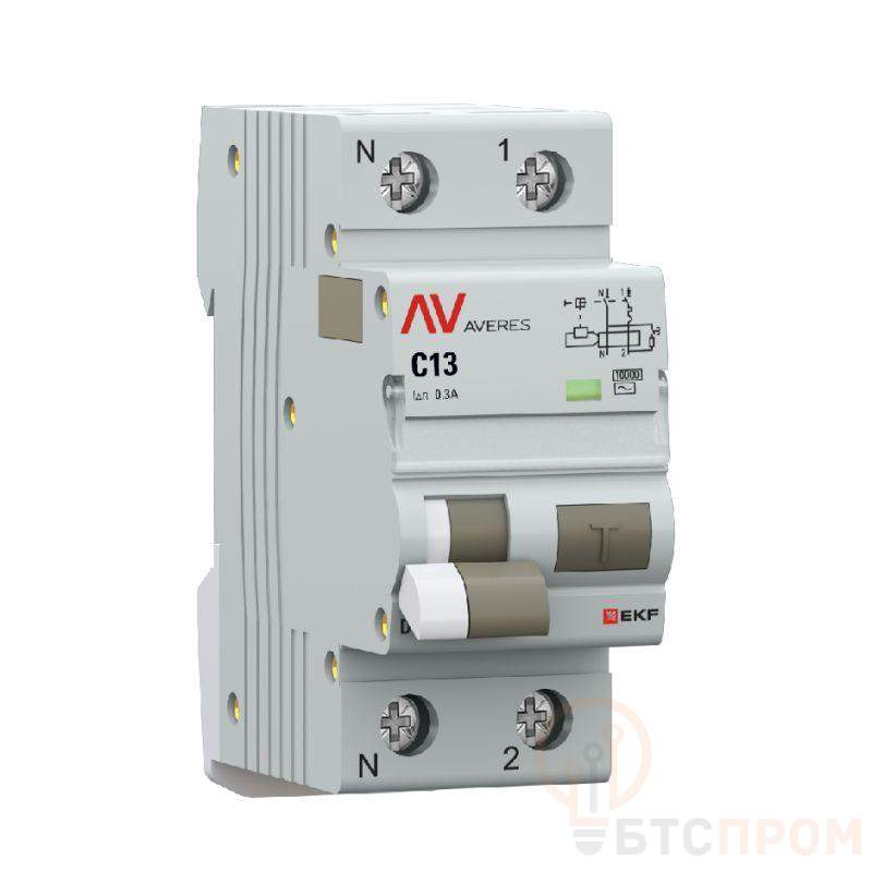 Выключатель автоматический дифференциального тока 2п (1P+N) C 13А 300мА тип AC 10кА DVA-10 AVERES EKF rcbo10-1pn-13C-300-ac-av