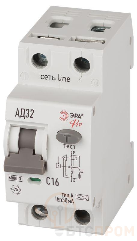 Выключатель автоматический дифференциального тока 2п (1P+N) C 16А 30мА тип A 6кА АД-32 электрон. PRO D326E2C16A30 Эра Б0059195